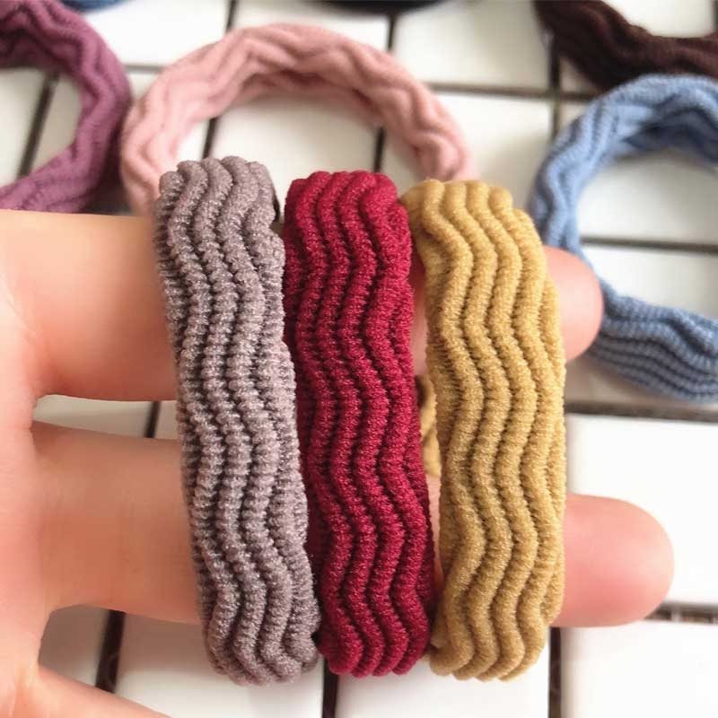韩版波浪彩色粗发圈 高弹力加粗发圈 弹性好 一元店饰品货源批发