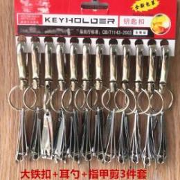 大铁扣+指甲剪+耳勺3件套钥匙扣 套装 一元两元货源