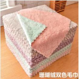 珊瑚绒双面不沾油抹布 25X25 吸水擦碗百洁布 1元店2元店货源